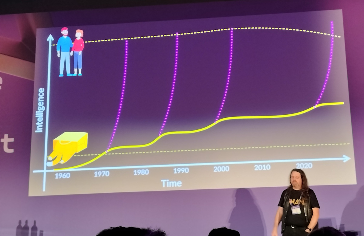 The presentation highlighted a recurring pattern in AI development: every decade or so, we see growth in AI intelligence and expect it to surpass human intelligence within a few years, but progress inevitably plateaus.
